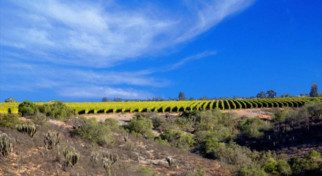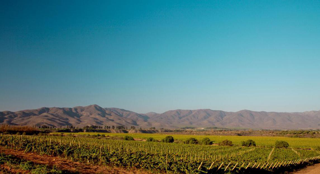 明朗如鏡的天空,映襯著連綿起伏的山丘,偶爾可見(jiàn)仙人掌、山楂樹和其它一些低矮的灌木叢,而在山谷之地,卻分布著成片的葡萄園,綠色的葡萄葉、黃色的土地與藍(lán)色的天空交相輝映,這就是阿塔卡馬沙漠(Atacama Desert)南部的風(fēng)光,著名的利馬里谷(Limari Valley)產(chǎn)區(qū)便坐落于此。