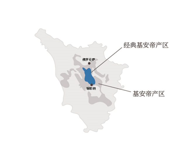 1716年,托斯卡納大公(Grand Duke of Tuscany)科西莫三世(Cosimo III)頒布法令,正式劃定了基安帝葡萄酒的官方認(rèn)證產(chǎn)區(qū)范圍。這一處于佛羅倫薩與錫耶納之間的地理范圍也因此被稱為“科西莫邊界”。隨著基安帝葡萄酒的名聲進(jìn)一步擴(kuò)大,其產(chǎn)量已不能滿足日益增長的市場需求,科西莫邊界以外的鄰近地區(qū)也開始出產(chǎn)“基安帝”或者“基安帝風(fēng)格”的葡萄酒。為了將二者區(qū)分開來,1932年,政府頒布了一項(xiàng)法規(guī),將科西莫邊界內(nèi)出產(chǎn)的基安帝葡萄酒稱作“經(jīng)典基安帝”,而科西莫邊界外鄰近地區(qū)出產(chǎn)的“基安帝風(fēng)格的葡萄酒”則被稱作“基安帝”。