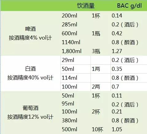 那么,不同的血液酒精濃度對(duì)應(yīng)多少酒呢?