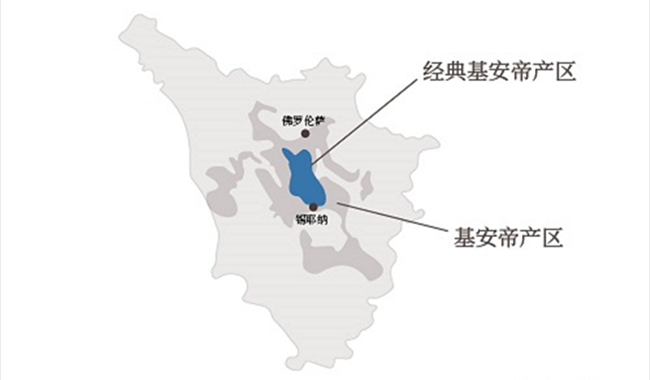基安帝與經典基安帝是意大利托斯卡納(Tuscany)產區的兩個子產區。在地理位置上,經典基安帝位于基安帝最核心、最古老的地區,不過,經典基安帝于1996年獲得了自己的DOCG等級認證,因而兩者是相互獨立的兩個產區,都有著自己的生產法規。在地理條件上,經典基安帝的葡萄園海拔較高,所以該產區的桑嬌維塞(Sangiovese)成熟速度較為緩慢,有利于酸度和風味物質的積累。
