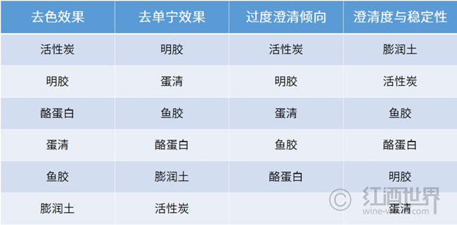目前,釀酒師們最常用的澄清技術有沉淀、過濾和下膠。其中前兩者均是去除顆粒物的物理過程,而下膠則是在葡萄酒中添加具有吸附力的澄清劑,把引起酒液渾濁的物質凝結成顆粒或團狀物,最后通過過濾一并去除的過程。作為一種加速沉淀的方法,下膠是釀酒師普遍采用的澄清技術,需根據葡萄酒的特性和狀態選擇合適的澄清劑,以達到理想的澄清效果。