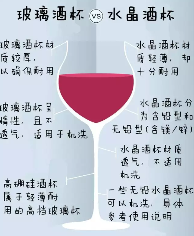 喝葡萄酒的酒杯種類繁多,形狀各異,再加上市場上各種商店價位……如何挑選適合的酒杯便成為了一件頭疼的事情。在選購的時候,除了需要關(guān)注酒杯的形狀外,材質(zhì)也是不可忽略的要點。