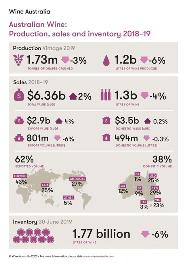 根據(jù)澳大利亞葡萄酒協(xié)會(huì)(Wine Australia)今天發(fā)布的《2019年葡萄酒生產(chǎn)銷售和庫(kù)存報(bào)告》顯示,澳洲葡萄酒總銷量連續(xù)第二年超過(guò)產(chǎn)量,這表明供應(yīng)趨緊并提升了澳大利亞葡萄酒行業(yè)的價(jià)值。