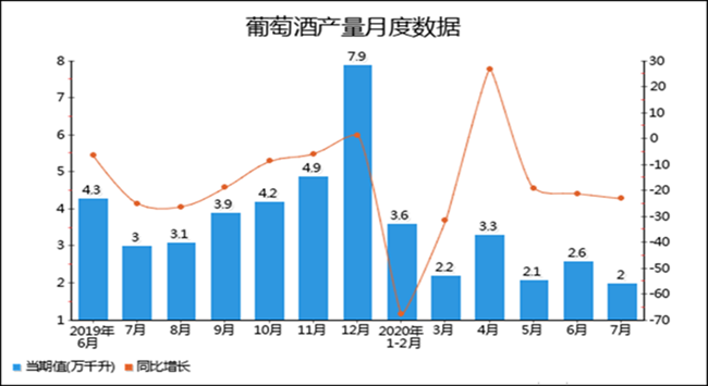 2020年1-7月全國葡萄酒產(chǎn)量分月數(shù)據(jù)