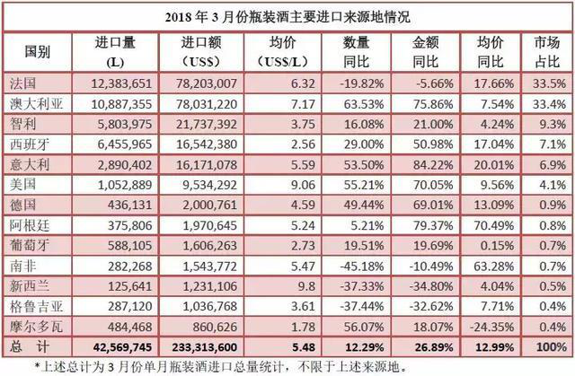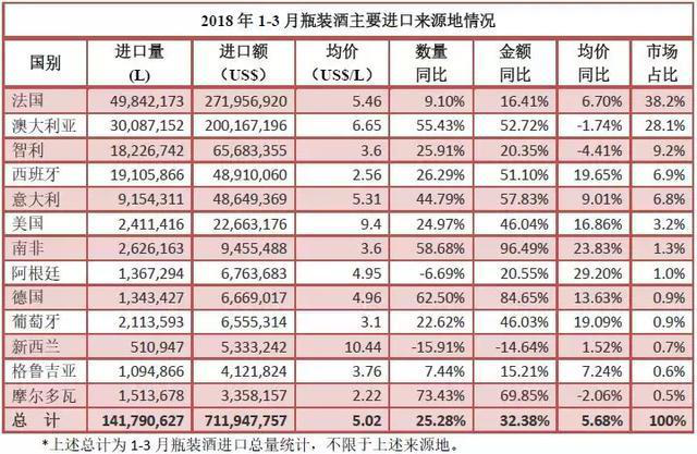 考慮到2月份春節的因素,綜合一季度數據來看,或能更加客觀、全面地反映近期瓶裝酒進口的實際情況: