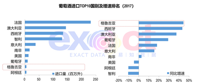 沿海葡萄酒小產(chǎn)國格魯吉亞增長快速,增速超過40%,躋身十強(qiáng);