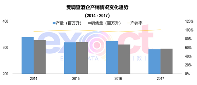 自2014年以來,國產(chǎn)葡萄酒企產(chǎn)銷率維持在95%以上,基本能實現(xiàn)產(chǎn)銷平衡。2017年葡萄酒的產(chǎn)量和銷量雙雙降至近幾年來的最低值,但產(chǎn)銷率為100.73%,為近幾年最佳平衡點。