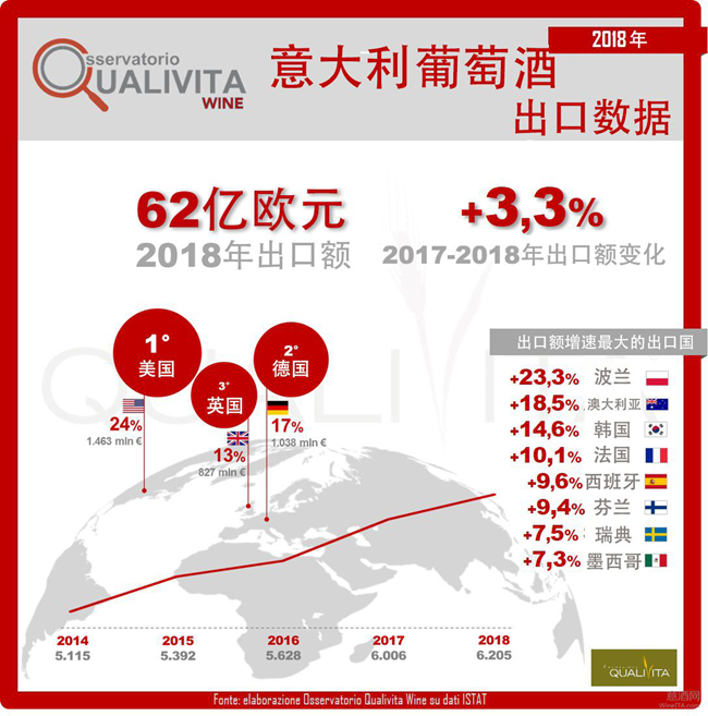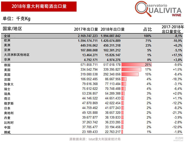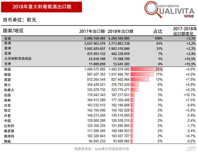 6. 意大利2018年葡萄酒出口官方數據出爐