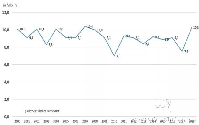2018年德國葡萄酒的全國產量達到10.27億升。這個數值略低于2018年10月發布的10.67億升估計值。最新數據由德國葡萄酒協會(DWI)根據聯邦統計局的最終收獲結果予以發布。