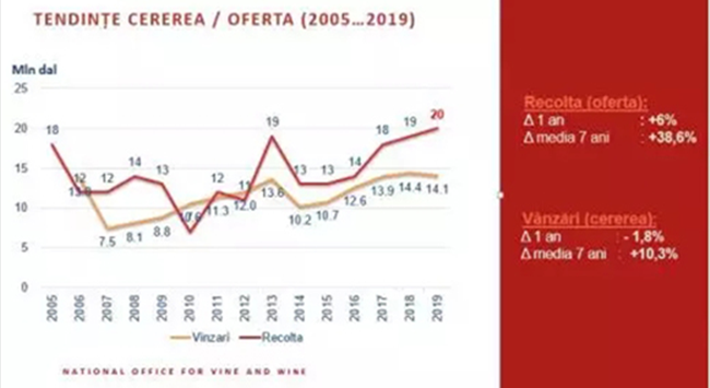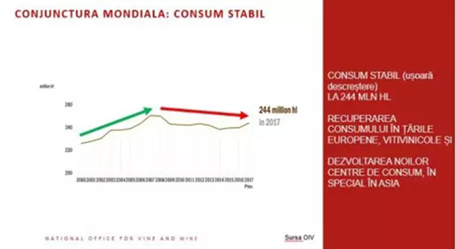 在過去14年中,全球盛產葡萄酒,且十年來葡萄酒消耗量陷入停滯,導致葡萄酒供大于求。摩爾多瓦共和國更是連續(xù)兩次取得創(chuàng)紀錄的豐收,并設法保持主要出口指標相對穩(wěn)定,出口量小跌但影響甚微。