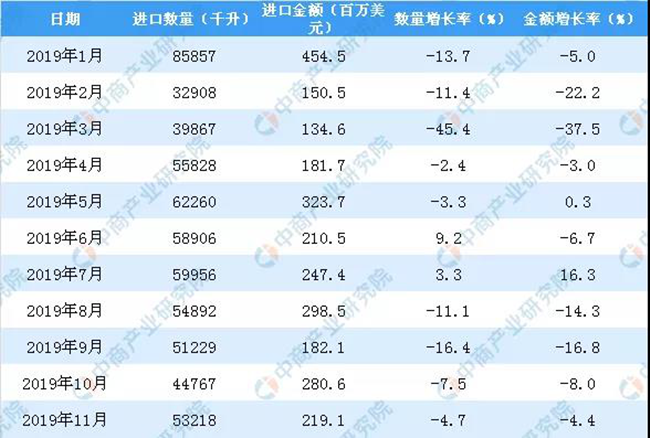 2019年1-11月中國葡萄酒進(jìn)口量同比下降10.6%