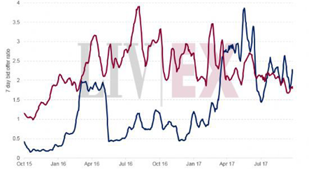 Liv-ex的實時出價和報價總值持續不斷創紀錄高位,目前約在4750萬英鎊水平。即自三周前公布的新紀錄以來,又再增加了250萬英鎊。 令人鼓舞的是,出現出價和報價總值增加的酒區不只限于波爾多,而跨越了多個不同的酒區市...