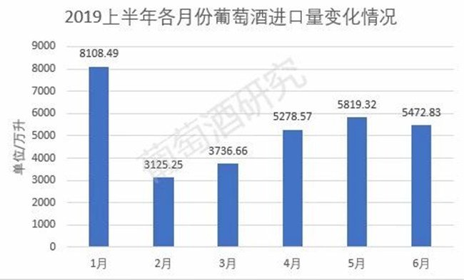 根據中國食品土畜進出口商會酒類進出口商分會公布2019年1-6月酒類統計數據顯示:在2019年的1月份我國葡萄酒進口量達到一個峰值,這主要是受春節旺季的影響,市場的需求旺盛!藍菲作為進口葡萄酒市場招商企業,早已加大庫存,藍菲酒業恒溫倉儲中心總面積達三千多平米,可同時容納一百多萬瓶紅酒,為紅酒代理商囤積了常規銷售量3-6個月的穩定貨源。